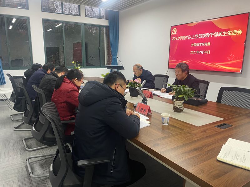 2月20日下午,外国语学院在9J211会议室召开2022年度处级党员领导干部民主生活会。校党委常委、副校长费为银,校督导组成员、党委研究生工作部部长王勇智到会指导,学院党政领导班子成员参会,会议由学院党委书记董金权主持。