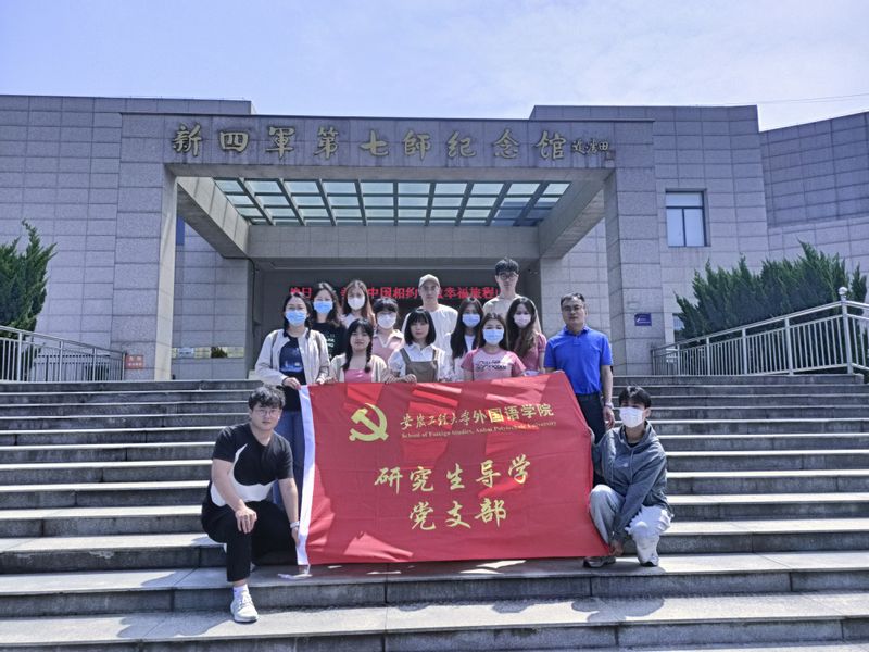 为推动学习贯彻习近平新时代中国特色社会主义思想主题教育走深走实,进一步推进党史学习教育,厚植爱党爱国情怀,外国语学院研究生导学支部于5月19日赴无为新四军七师纪念馆开展实践教育学习暨“追寻红色足迹,传承红色基因”主题党日活动。导学支部师生党员、发展对象和入党积极分子参加了此次活动。