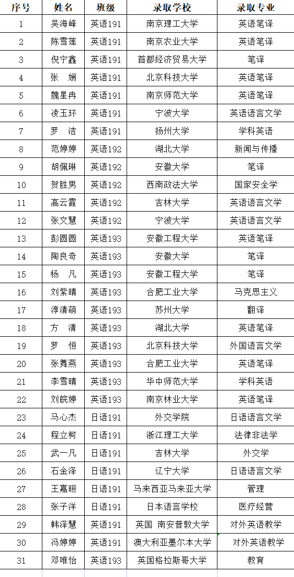 外国语学院2023年考研和出国录取一览