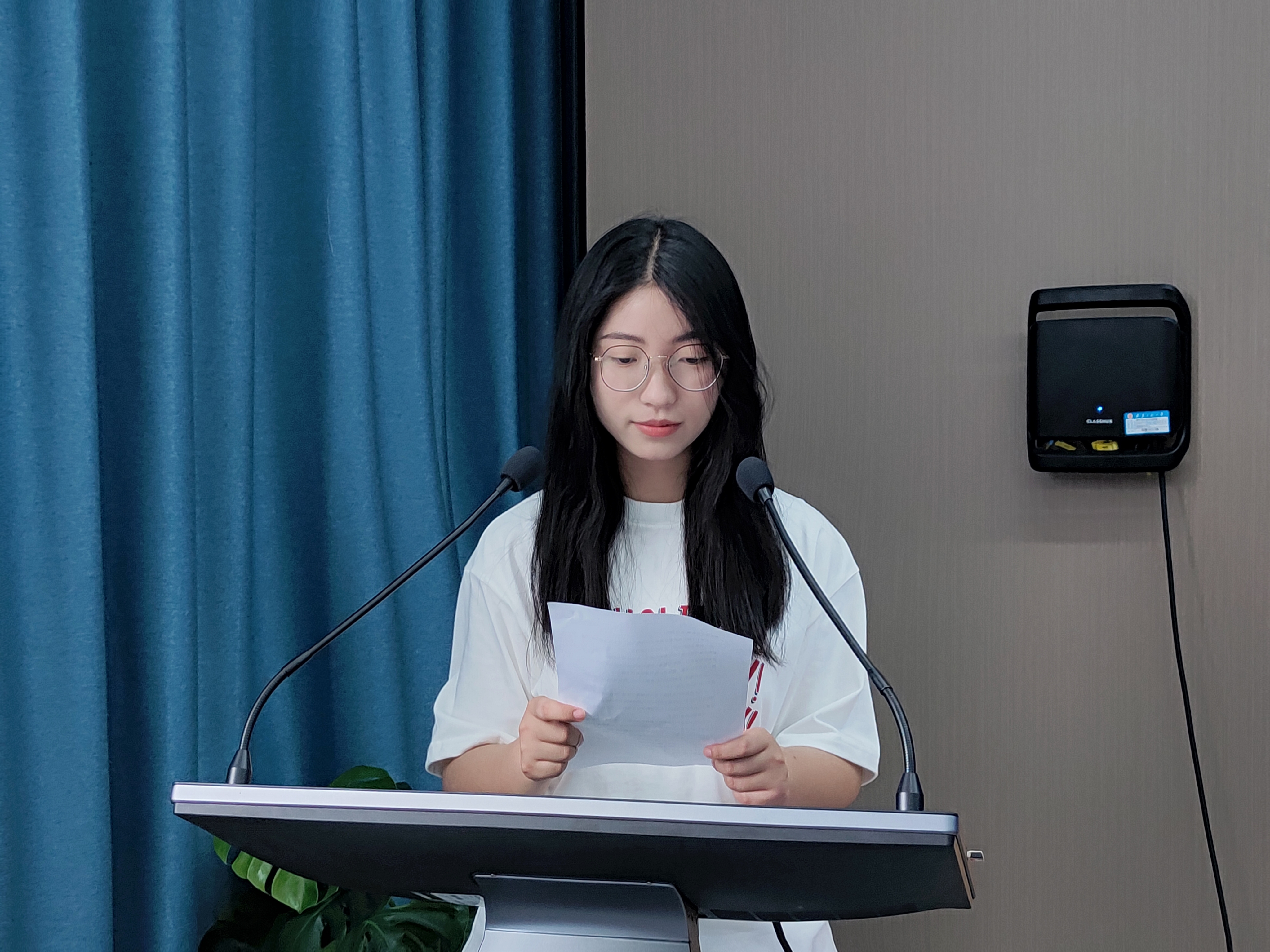 陈小庆介绍了暑期留校学生的基本情况及学院暑期管理工作方案。英语201方洁作为留校学生代表发言,她表示在校期间会模范遵守学校各项纪律要求,做自己安全的“第一责任人”。全体留校学生签署暑期安全承诺书。
