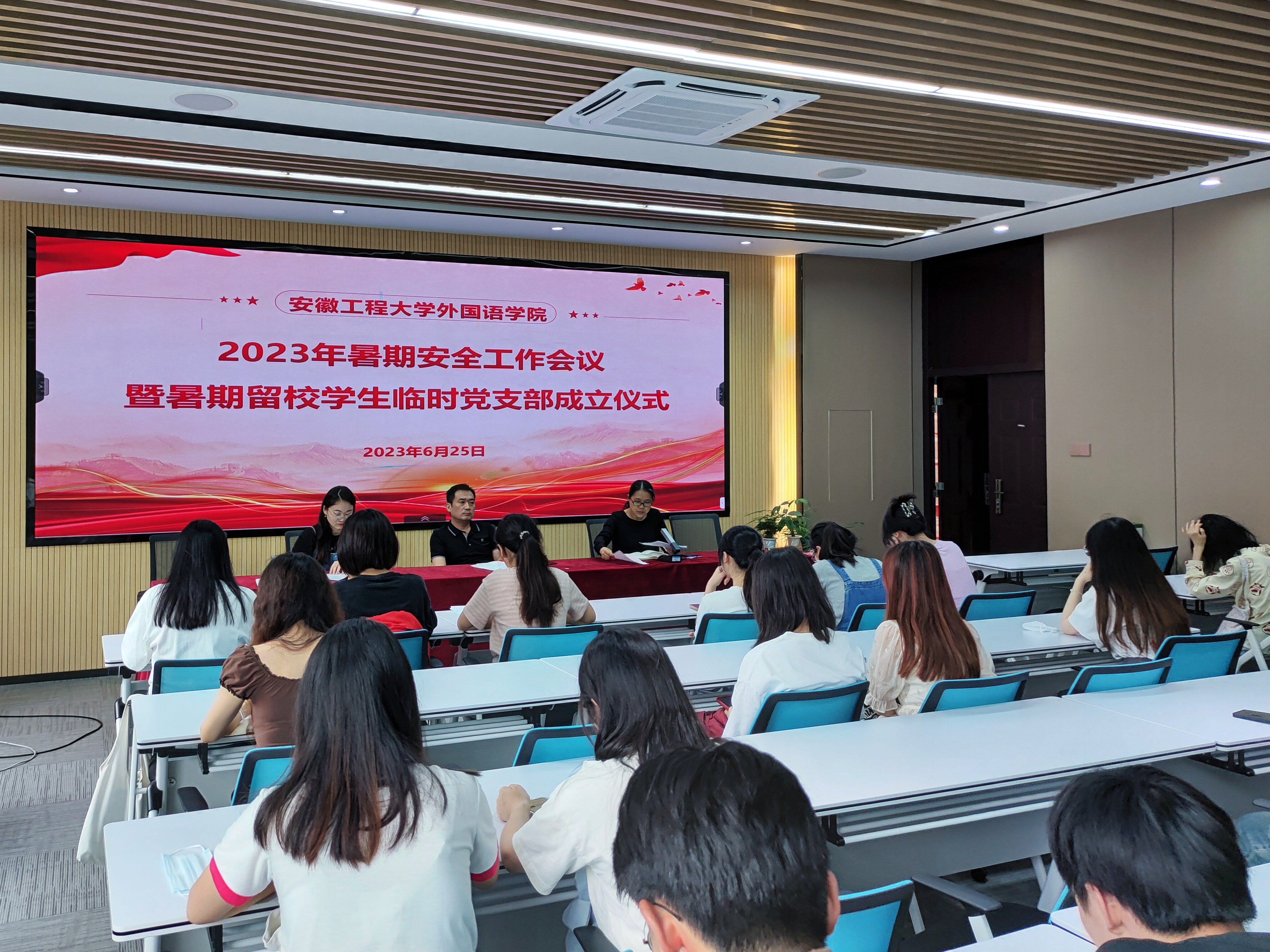 为深入落实学校“三抓”工作要求,发挥基层党组织的战斗堡垒作用,做好暑期留校学生教育管理和服务工作,6月25日下午,外国语学院举行暑期留校学生临时党支部成立仪式暨暑期留校学生安全教育会议。学院党委书记董金权、学院党委副书记李校林、学院辅导员以及全体留校本科生和研究生参加会议,会议由临时党支部副书记、辅导员陈小庆主持。
