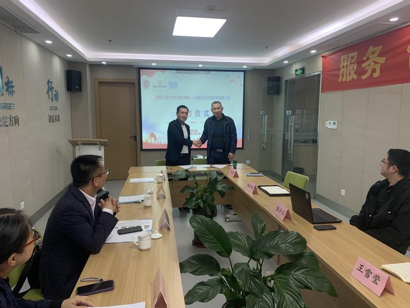 华图教育安徽分校校长王运龙、安徽译创语言服务有限公司总经理施永双 对学院一行的到来表示热烈欢迎,并就其具体业务做了详细介绍,他们希望双方坚持需求导向、目标导向和成效导向,在人才招聘、师资共享、语言技术服务等方面的合作落地见效。