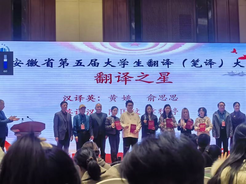 安徽省翻译大赛由安徽省外国语言文学类专业合作委员会和安徽省外国语言文学学会主办,大赛旨在贯彻落实中央有关部门关于加强翻译人才队伍建设有关精神,满足新时期日益扩大的语言服务人才需求,促进翻译学科建设和语言服务行业繁荣发展,为培养与发现适应新时代国际传播需要的专门语言服务人才奠定基础。外国语学院对本次赛事高度重视,赛前广泛宣传,动员学生参加比赛,积极组建指导团队,与参赛学生不断探讨、打磨译文。