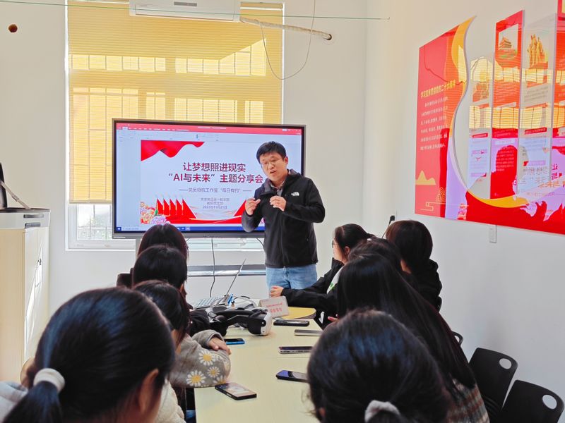 11月21日,外国语学院党员领航工作室邀请中科睿智科技有限公司总经理徐康总工程师在学生社区为同学们带来了一场别开生面的“AI与未来”主题分享会,活动由党员领航工作室成员、企业兼职导师、大学英语第一教学部博士党员苏涛主持,英语、日语专业二十余名学生参与交流。