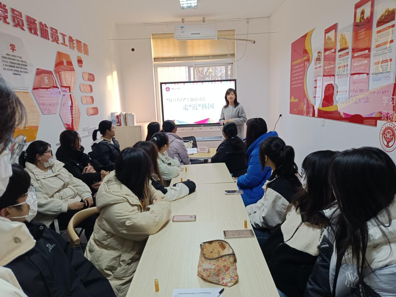 为贯彻落实学校“三全六专”育人要求,引导学生“正”起来、“学”起来,进一步开拓学生的国际视野,提高学生的跨文化交流能力,12月6日,外国语学院党员领航工作室举办“每日有约”---走“近”韩国跨文化交流活动。韩国国立公州大学英语教育专业博士、大学英语第二教学部专业教师刘绍霞与同学们开展交流分享。