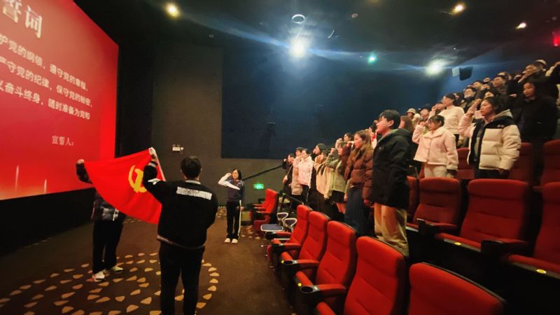 观影前,现场举行了老党员重温入党誓词和新党员入党宣誓仪式。