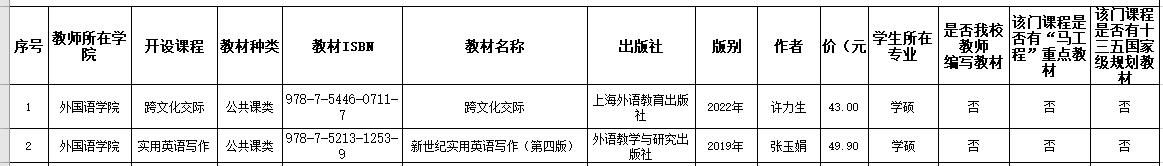 根据学校《RayBetApp官网下载 教材管理办法》要求,经课程组提出选用申请,学院审核,马克思主义理论和思想政治教育方面的专家审查,学院党委会审议、党政联席会议审定,现将2023-2024学年第2学期学硕教材选用情况公示如下:
