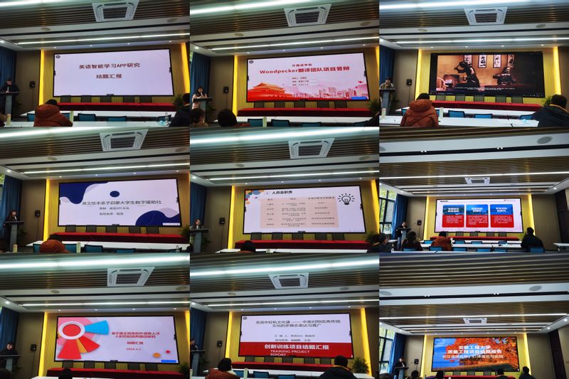 本次答辩会主要包括大学生创新创业项目、校级重点教研和集体项目,项目负责人从项目实施情况、创新性、研究内容、取得成果等方面进行介绍,采取PPT汇报方式在5分钟内完成,答辩老师和学生都做了充足准备,效果良好。