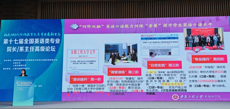 据悉,近年来,外国语学院基于AI时代英语专业人才培养的新内涵,准确识变、科学应变、主动求变,形成了英语专业“外语+人工智能”办学特色和大学英语“四阶双融”口语提升典型经验。