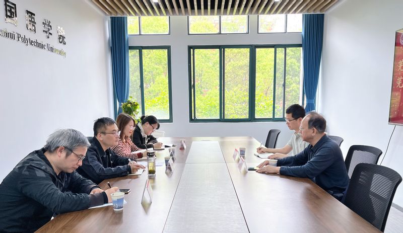 4月16日下午,外国语学院与来访的芜湖市宝马职业培训学校校长徐新春、芜湖飞人教育有限公司董事长谷秦汉一行进行项目合作洽谈,副院长李新国、韩利敏、英语系骨干教师代表参加了交流。
