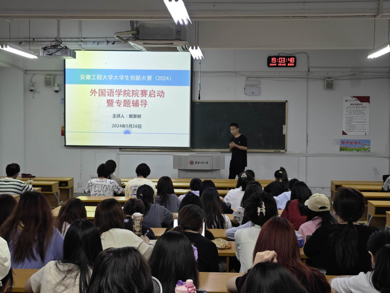 为切实做好2024年中国国际大学生创新大赛的备赛工作,增强学生对该项赛事的认识,有效提升参赛项目的竞争力,营造良好的创新创业氛围。5月16日晚,外国语学院创新创业中心在4教108,举办了中国国际大学生创新大赛院赛启动仪式暨专题辅导活动。本次活动由创新创业中心负责人苏涛主持,一百余名英语专业学生参加了辅导。