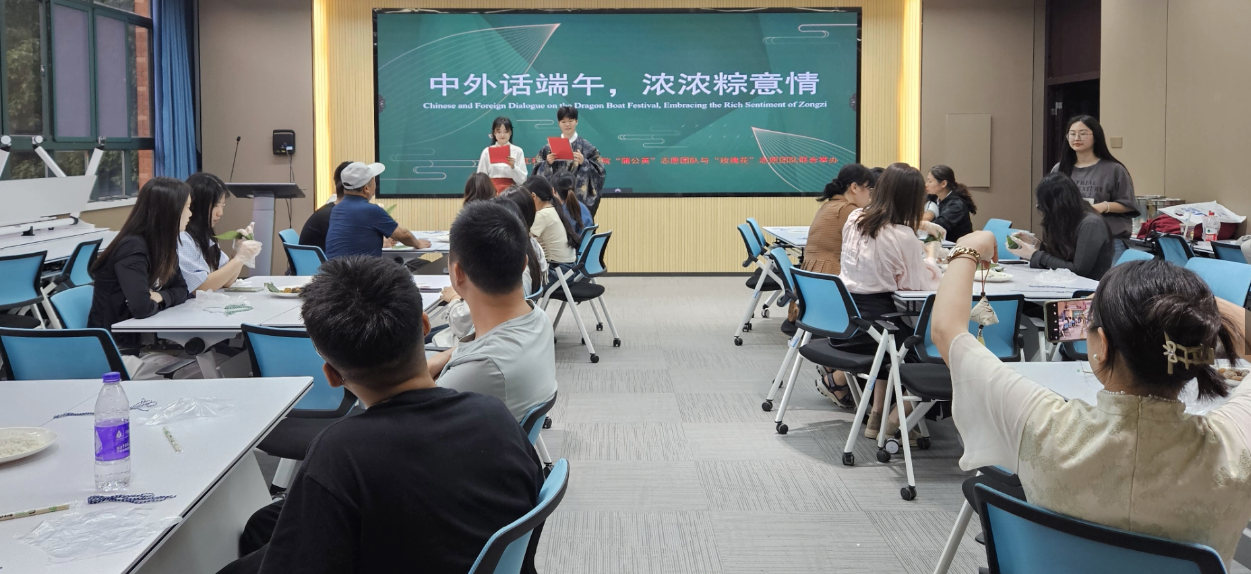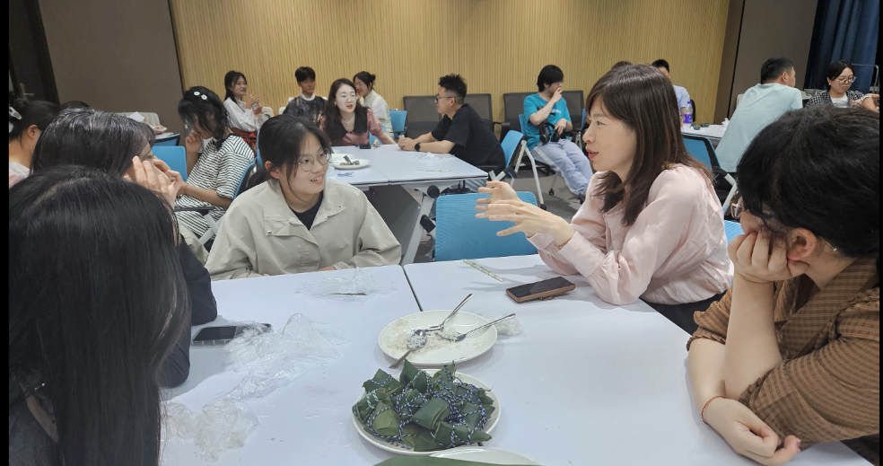 为迎接第八个“文化和自然遗产日”的到来,67日晚630分,外国语学院在9209举办“口语广场-英语角”端午节特别活动——“中外话端午浓浓粽意情”主题活动,邀请师生共同体验端午习俗,讲好端午故事。外籍教师Michael、学院全体辅导员、部分专业教师和子女,以及本科生代表共20余人参加了活动。