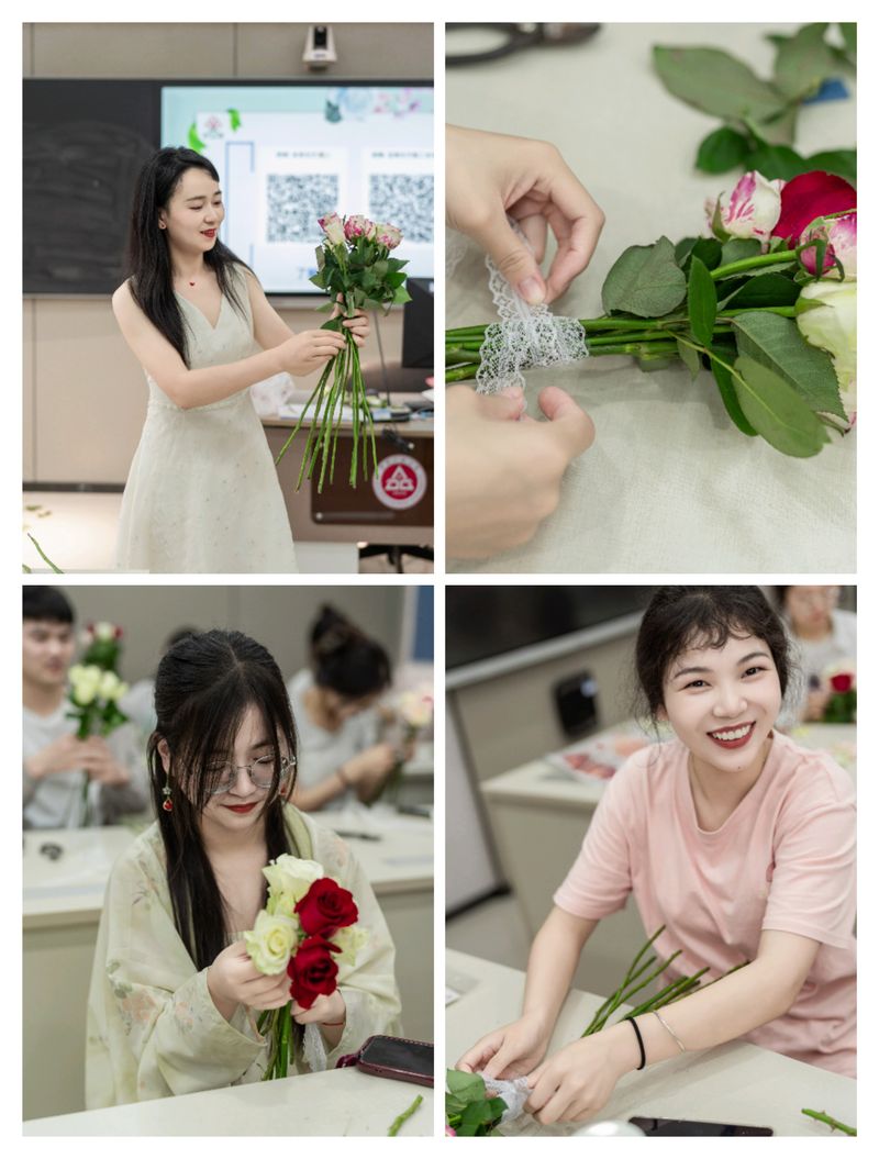 紧接着,同学们积极参与了捧花制作。在宜香文化传播公司总经理、花艺师张群的指导下,同学们精心挑选花材,亲手制作出一束束精美的捧花。这个过程中,同学们不仅学会了制作捧花的技巧,更体会到了劳动的乐趣和价值。他们用自己的双手,将普通的花材组合成寓意深刻的捧花,为党的生日献上了一份特别的礼物。