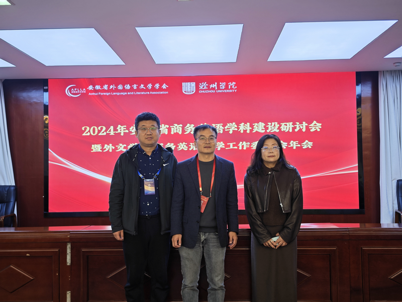 11月8日至10日,由安徽省外国语言文学学会主办、滁州学院承办的“2024年安徽省高校商务英语学科建设研讨会暨外文学会商务英语教学工作委员会年会”在滁州学院隆重召开。本次研讨会以“数智赋能、创新发展、协同育人”为主题,吸引了来自省内外的专家、省内各高校商务英语专业负责人、合作企业单位代表及教师代表近100余人参加。外国语学院副院长李新国、英语系主任苏涛及教师代表项菁受邀参会。