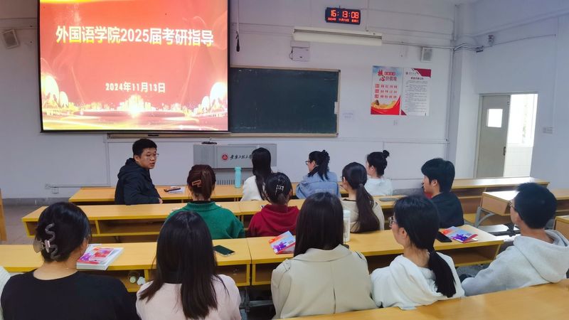 与此同时,英语系教师党支部书记苏涛、党员教师朱琦,参加了外国语学院2025届考研专题辅导。在这个关键时刻,他们为即将踏上考研征程的学生们提供了宝贵的指导和建议。苏涛书记围绕考研形势、备考策略等方面进行了深入浅出的讲解,鼓励学生们坚定信心、积极备考。朱琦老师则结合自身的教学经验,为学生们提供了实用的复习方法和应试技巧。