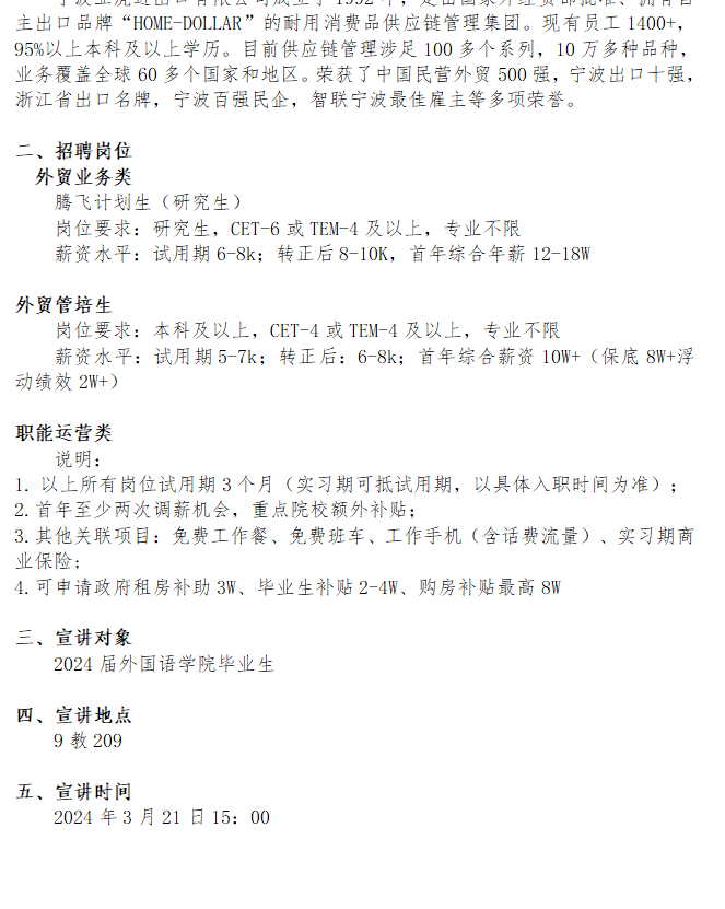 宁波亚虎进出口有限公司2024届校园招聘宣讲会