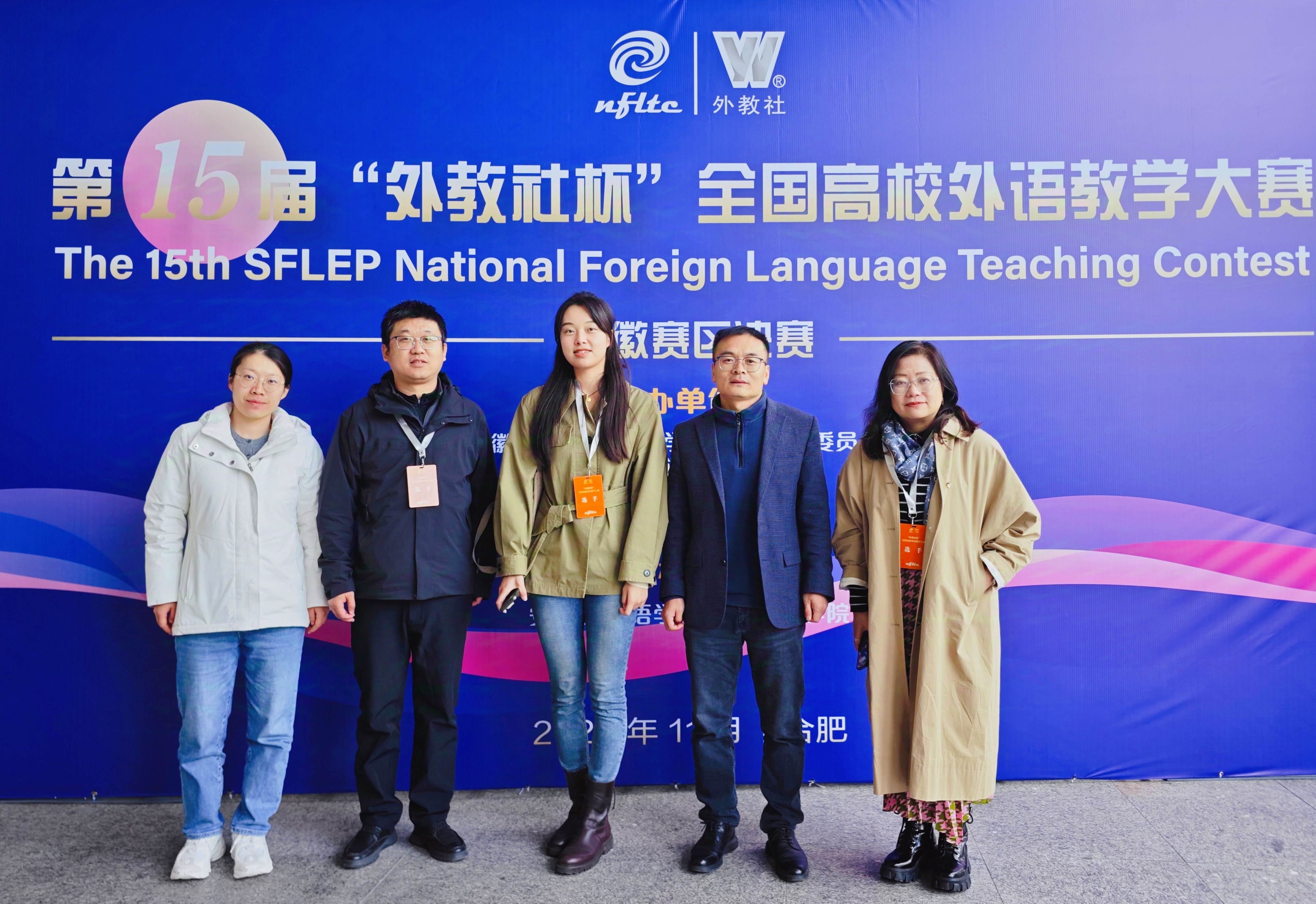 11月22日,第15届“外教社杯”全国高校外语教学大赛安徽省决赛在合肥圆满落幕。我校外国语学院许文清团队(项菁、苏涛、黄邵娟、白璐),王钰团队(许庆美、吴艳晖),薛爱华团队(刘绍霞、黄泽富、徐鹏)分别荣获商务英语专业组、研究生英语组、中国文化组特等奖、一等奖、二等奖。其中,许文清团队将代表安徽省参加全国决赛。外国语学院副院长李新国教授应邀担任了本次大赛评委并出席颁奖仪式。