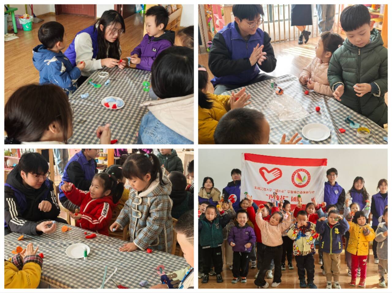 巧手制“团圆”,童梦文化牵。12月6日上午,外国语学院的同学们来到校附属幼儿园中(2)班开展了“巧手制‘团圆’ 童梦文化传”主题活动。主持人以一幅“青蛙包饺子”的漫画图片激起了小朋友们对冬至习俗的兴趣,小朋友们你一言,我一语,围绕冬至习俗展开热烈讨论。现场播放了一段视频,向小朋友们介绍古人庆祝冬至的传统方式,并一起学习了冬至和饺子的英文表达。最后,在同学们的帮助下,小朋友们认真地制作了弹簧小汤圆和粘土饺子等手工作品,并开心的向他人展示了自己的成果。