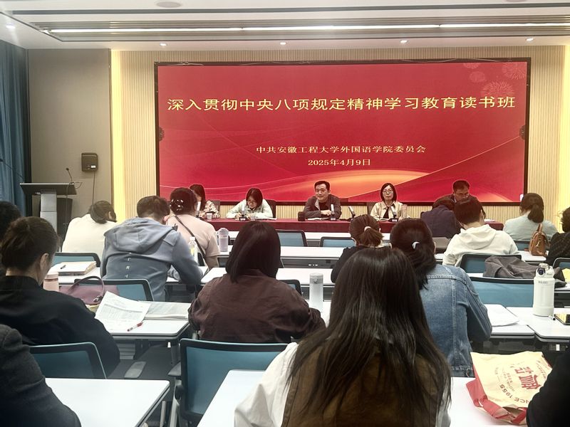4月9日,外国语学院深入贯彻中央八项规定精神学习教育读书班在9J209会议室开班,学院党政领导、党委理论学习中心组成员、各党支部书记、教师党员参加,学院党委书记董金权主持开班式并作“开班第一讲”。