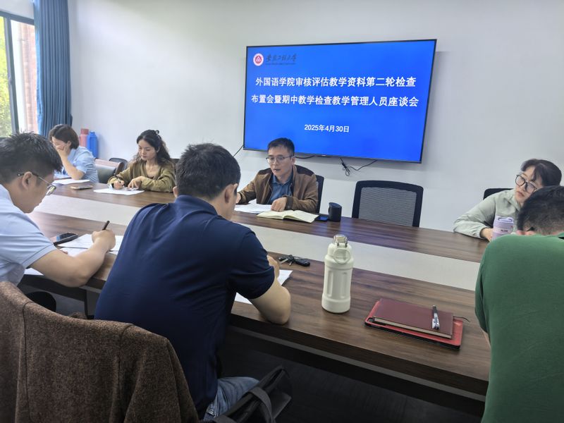 为扎实推进教育教学审核评估工作,全面梳理期中教学检查相关情况,外国语学院于4月30日在9J211会议室召开审核评估教学资料第二轮检查布置会暨期中教学检查教学管理人员座谈会。学院各系部主任、副主任、秘书,本科教学办公室主任等教学管理人员参加了会议,会议由教学副院长李新国主持。