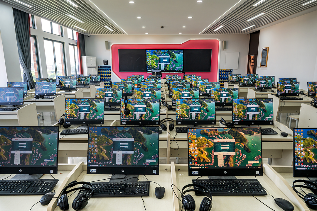 外国语学院笔译实验室是以计算机辅助翻译技术和数字化平台为核心的专业教学与实践场所,共56个座位,用于英语专业与MTI专业的笔译教学任务。实验室支持教师通过数字化平台分发翻译作业、试卷并进行在线批改。学生端可实现实时互动、查看指导信息,并通过翻译软件完成个人或小组翻译项目实践。配备《译学家》计算机辅助翻译(CAT)软件,支持术语库管理、语料库建设、翻译质量控制和项目管理功能,提升翻译效率与一致性。软件支持译前、译中、译后全流程操作,强化学生对现代翻译技术的掌握。