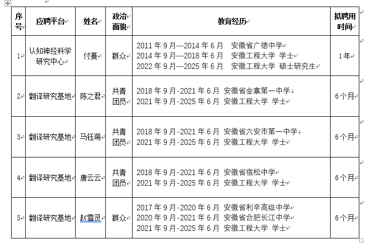 根据《RayBetApp官网下载 科研助理岗位招聘公告》通知要求及学院科研平台需求,经考核,拟录用付蔓等5人,现将相关信息予以公示,公示时间:2025年6月13日至2025年6月17日。