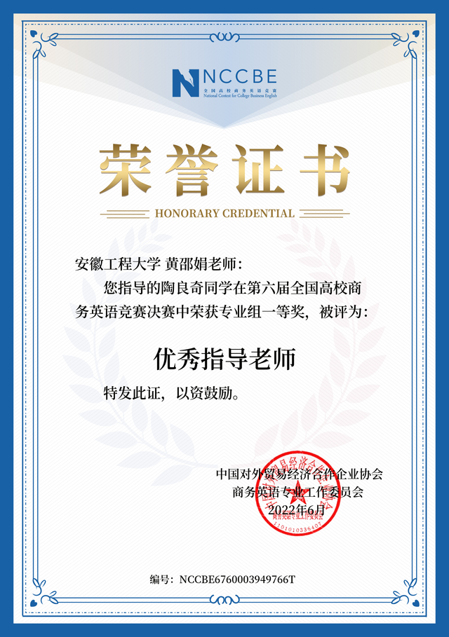 2022全国商务英语知识竞赛一等奖