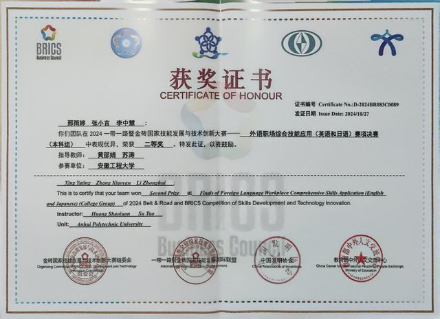 2024一带一路暨金砖国家技能发展与技术创新大赛二等奖