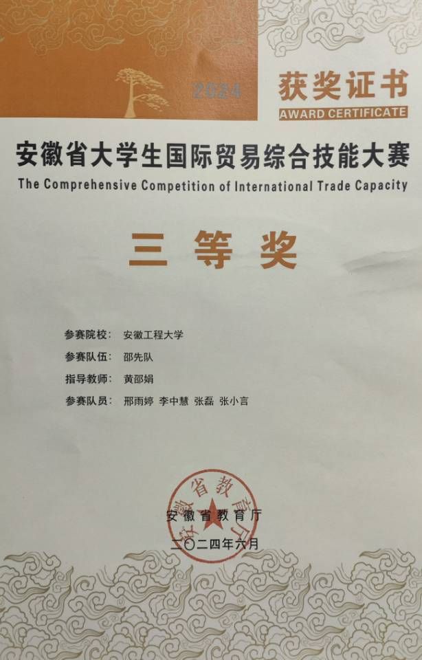 2024安徽省国贸技能大赛三等奖