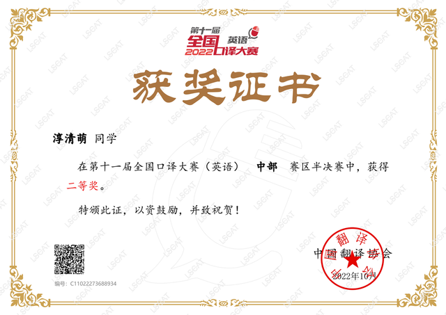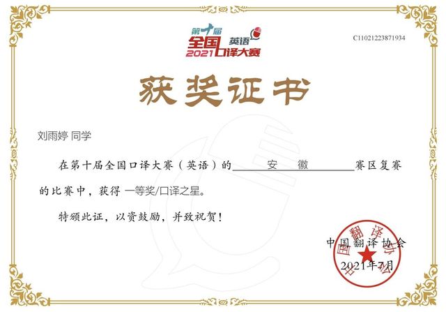 课程始终以赛促学、以战赋能,培育出一批口译能力扎实的优秀学子。学生在全国口译大赛、“理解当代中国”全国大学生外语能力大赛口译赛项、海峡两岸口译大赛等权威赛事中屡创佳绩——多人次晋级华中大区赛、省赛,更有同学在全国口译大赛省赛中脱颖而出,以精湛的语言转换功底与跨文化沟通能力,斩获省赛第一名(“安徽省口译之星”)殊荣。