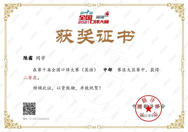陈霜-大区赛二等奖
