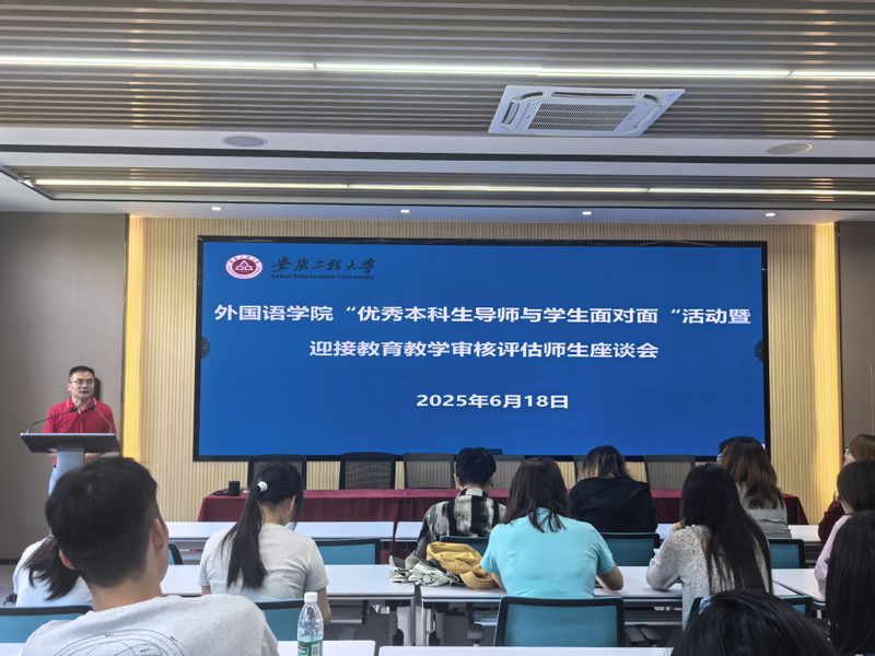6月18日上午,外国语学院在9j209教室成功举办"本科生导师面对面"主题交流暨迎接审核评估师生座谈会。本次活动围绕本科教育教学审核评估,聚焦聚焦本科生导师工作,特别是如何助力学生学业深造做好精准指导,听取同学们的建议和意见。副院长李新国、日语231班全体学生、校级优秀本科生导师李晓光老师参加。