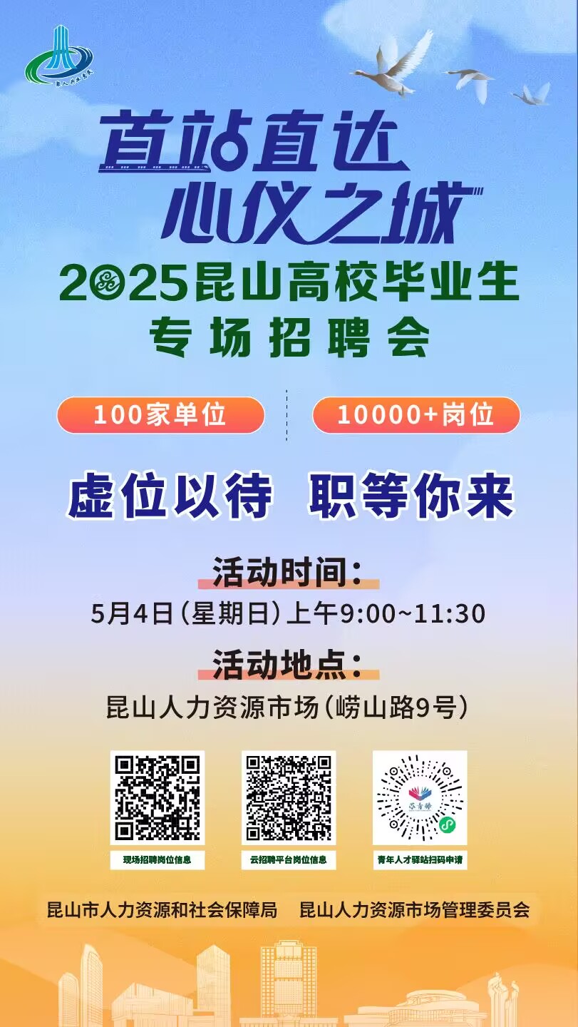 首站直达 心仪之城 2025昆山高校毕业生专场招聘会宣传海报