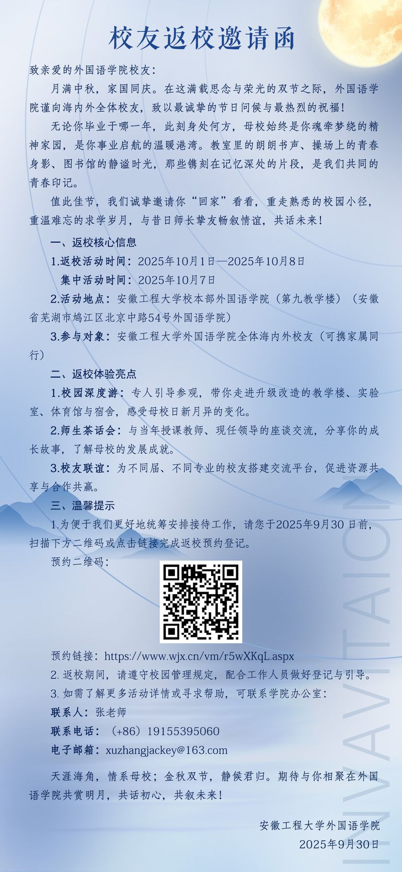 外国语学院诚邀历届校友2025国庆中秋“回家”看看