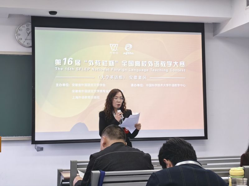 本届安徽赛区大赛由安徽省外国语言文学学会、安徽外国语言文学类专业合作委员会和上海外语教育出版社联合主办,中国科学技术大学外语教学中心承办,设有综合课组、视听说课组、传播中国组、研究生组四大组别,从教学内容、教学方法、教学设计、即兴问答等多个维度对参赛教师进行综合评价。许文清团队以其深度融合课堂与中国文化叙事的教学设计荣膺“传播中国组”特等奖;王金凤团队与崔燕团队则凭借以成果为导向的教学模式,分获大学英语组与研究生公共英语组二等奖。三支团队均展现出高度的敬业和团队协作精神,以创新的教学设计、扎实的语言功底和深厚的教学素养,赢得了评委的高度认可。其精彩表现充分展现了我校外语教学的整体实力与教师风采,优异的成绩的取得既是教师潜心育人,辛勤付出的回报,也离不开学院和相关部门对教师教学能力发展的一贯重视与全方位支持,是学校教师发展与学院专业建设成果的充分体现。