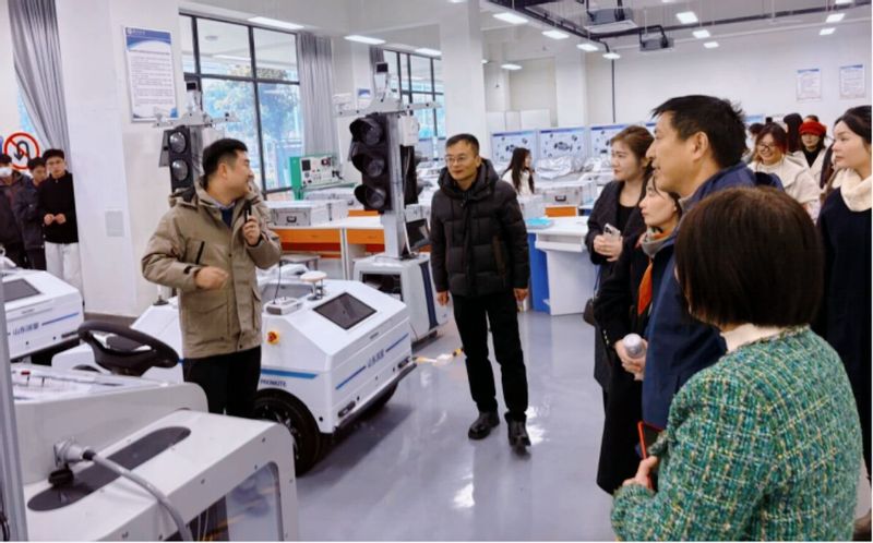 12月19日,外国语学院组织2024、2025级翻译硕士研究生前往机械与汽车工程学院,开展了一场以“工程翻译与科技认知”为主题的沉浸式研学活动。本次活动由学院副院长韩利敏积极对接和精心组织,学院副院长李新国、翻译硕士中心主任张凤梅带队,8位硕士生导师和翻译硕士研究生参加了本次活动。机械与汽车工程学院副院长张振、智能汽车线控底盘系统安徽省重点实验室主任肖平教授以及实验室相关负责人热情接待了外国语学院师生一行。活动聚焦工程科技翻译中的真实语境与专业认知需求,通过实地探访高端实验室、对话前沿技术,着力提升学生在机械与汽车领域的专业素养与翻译转换能力。