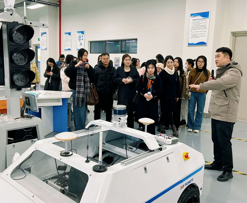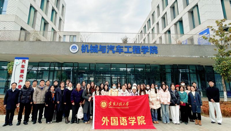 为深入推进跨学科融合育人,强化翻译硕士研究生的工程素养与实践能力,打造“外语+工程”复合型党建育人模式,外国语学院副院长韩利敏积极对接机械与汽车工程学院党委,协调和组织研究生导学支部的主题党日活动。12月19日下午,研究生导学支部全体党员在学院副院长李新国、支部书记王钰及部分研究生导师的带领下,赴国际工程师学院,开展“研学工科前沿,赋能翻译实践”主题党日活动,重点走访了机械与汽车工程学院相关实验室。机械与汽车工程学院副院长张振,智能汽车线控底盘系统安徽省重点实验室主任肖平、研究生支部书记程雷以及部分研究生党员给予了热情接待。