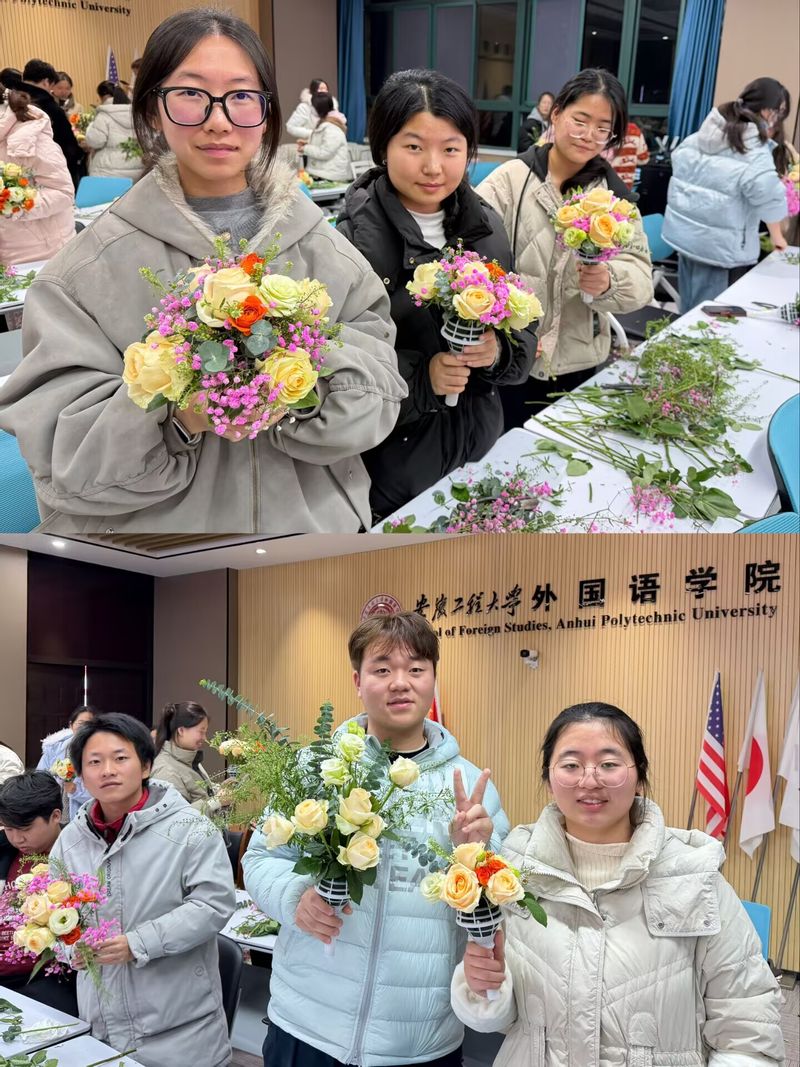 英语253班的汪瑞扬同学感慨道:“手捧花制作比想象中更考验整体把控与细节处理能力,但也让人倍感成就。它让我意识到,美不一定是宏大的,也可以握在手中、温暖在心田。”