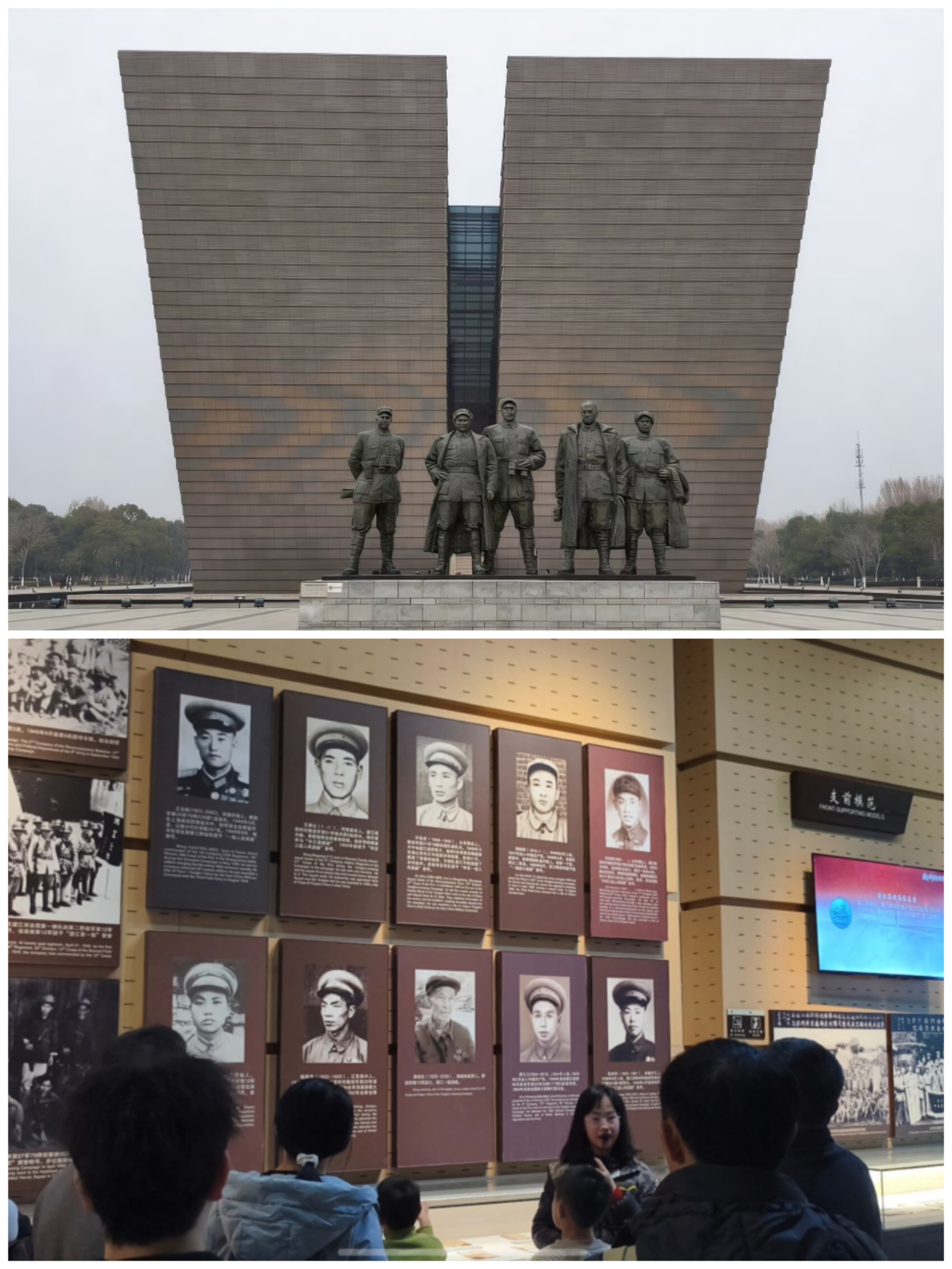 1月18日下午,团队来到渡江战役纪念馆。馆内“百万雄师过大江”大型群雕气势恢宏,沉浸式展厅生动再现了战役场景。在烈士名录墙前,成员们瞻仰了八千余位英烈姓名,马毛姐、刘世忠等英雄事迹令人动容。通过实物陈列与亲身体验,同学们深刻体会到军民团结的伟大力量和“三个不相信”精神的深厚根基。