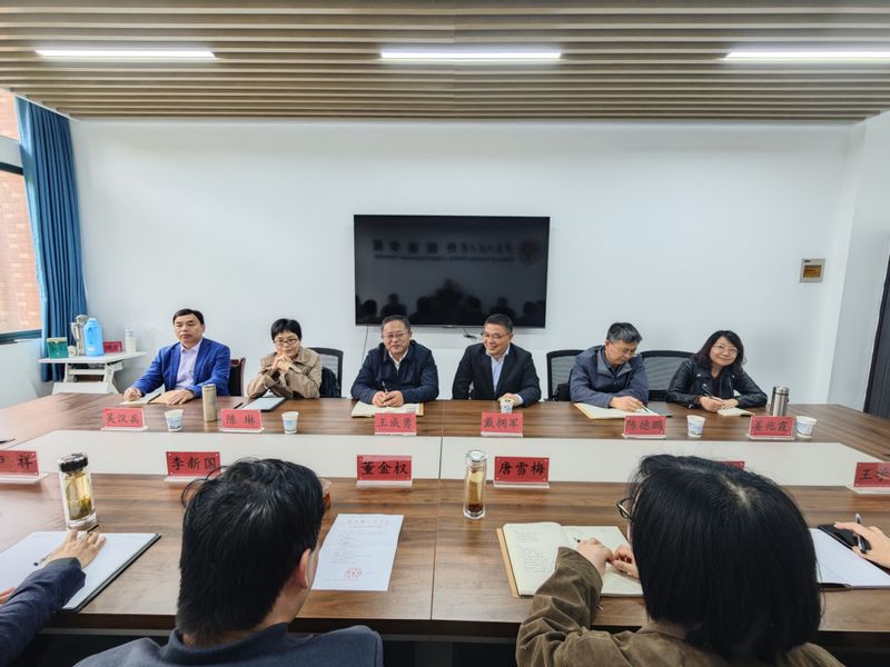 4月14日下午,安徽工业大学外国语学院与教务处一行赴我校外国语学院开展调研交流,座谈会在9教211会议室举行。双方围绕大学英语课程无纸化考试、英语专业新文科认证两项工作深入研讨。安徽工业大学调研团队成员包括该校外国语学院党委书记王成勇、院长戴拥军,教务处副处长、教师教学发展中心副主任陈德鹏,外国语学院副院长陈琳,外语系主任姜兆霞及教务处吴汉兵;我校外国语学院党委书记董金权、院长唐雪梅,教务处副处长王建彬,外国语学院副院长李新国,实验教学中心主任卢祥,英语系主任苏涛及大外二部主任徐鹏参加座谈。