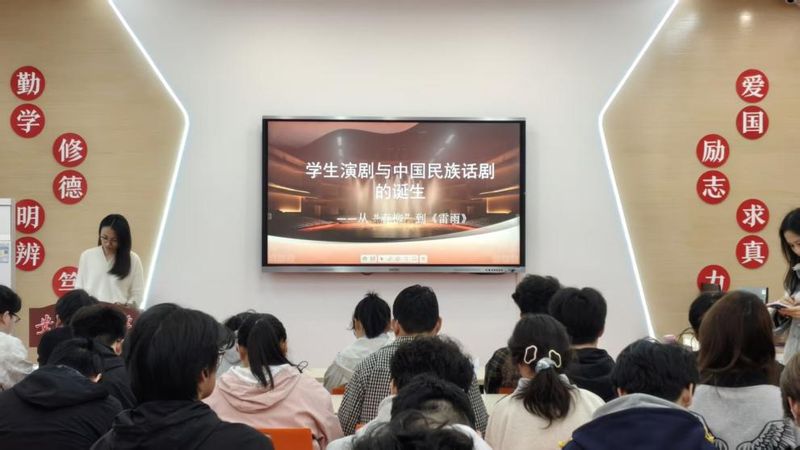 4月22日下午,RayBetApp官网下载 “艺韵春光”第二课堂在一站式学生社区1楼第二课堂运营中心迎来一场别开生面的戏剧文化讲座。本次活动由校团委主办,外国语学院文学文化科研团队承办,团队教师梁真博士以“从春柳到雷雨:学生演剧与中国民族话剧的诞生”为题,将个人戏剧史研究成果转化为生动的育人课堂,吸引了百余名学子参与。