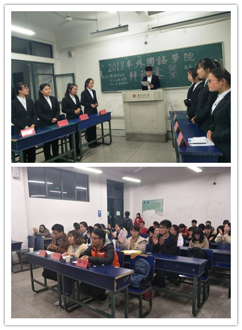 群雄舌战展雄风 争锋相对辩天下。3月23日晚,2018年院新生辩论赛决赛在6教304教室顺利举行。从初赛中脱颖而出的英语172班与英语173班的八位辩手再次出战,兄弟学院往届优秀辩手担任本次比赛的评委。最终反方英语172班获得了胜利,其一辩常文艾摘得“最佳辩手”称号。