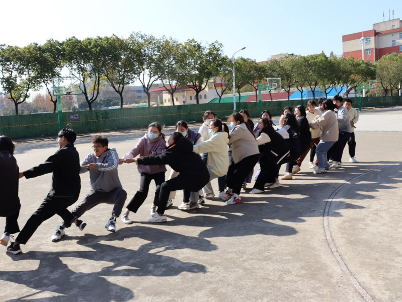 趣味运动会以团体赛为主,比赛项目包括拔河、五人六足、跳大绳和4*100接力跑。拔河比赛要求同学们以班级为单位参赛,其余比赛以寝室为单位进行。比赛现场,各寝室、各班级参赛队为了团队荣誉都卯足了劲,大家汗流夹背的身影在冬日暖阳的照耀下显得格外动人。掌声,笑声,观众们的“加油”声此起彼伏,现场洋溢着青春的气息,展现出年轻一代昂扬向上的风采。在激烈的角逐之后,英语213班摘得桂冠。