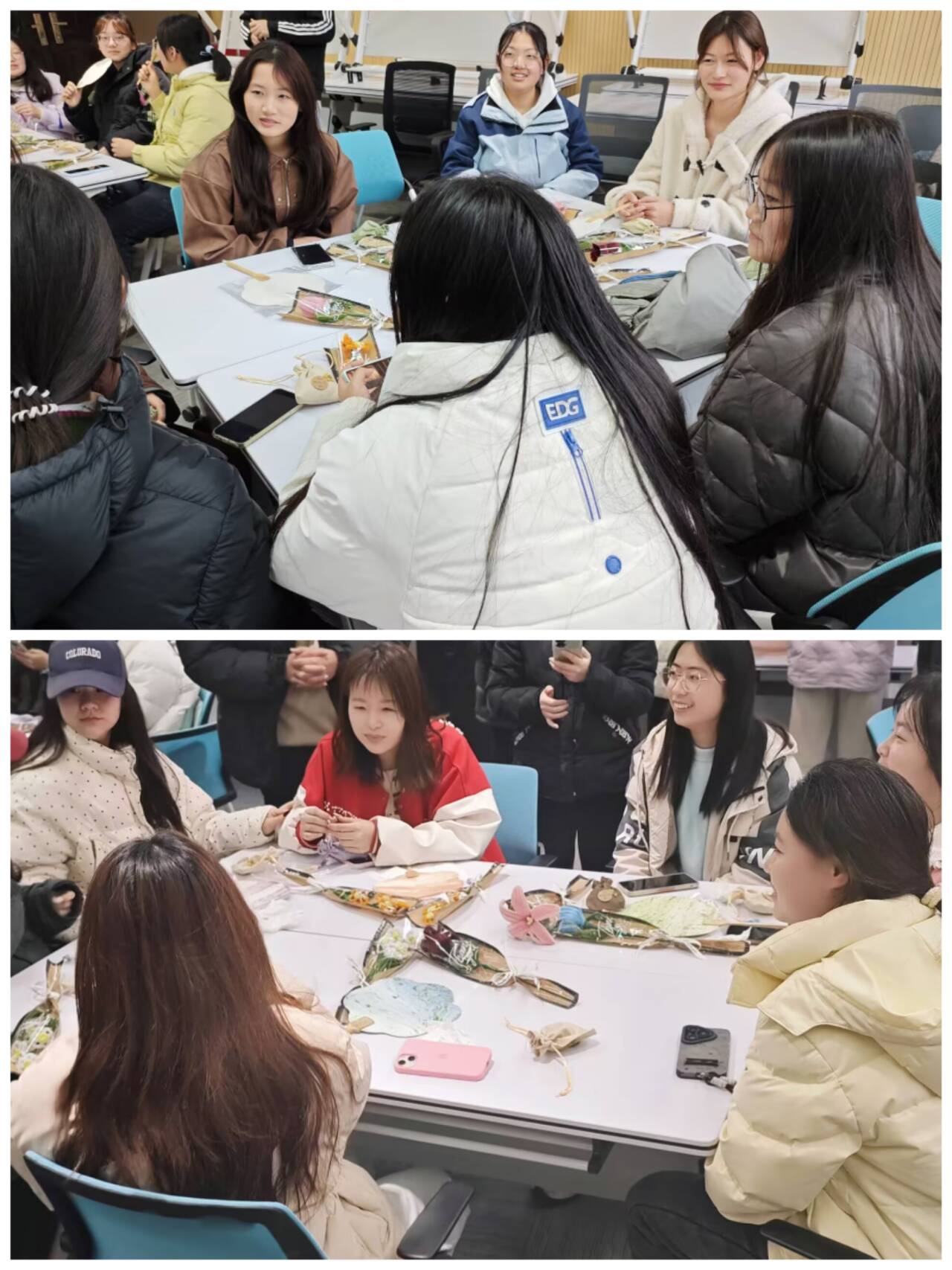 香囊古蕴呈匠心,漆扇流霞映芳华。3月7日下午,50余名同学齐聚在9教209,共同体验了制作漆扇和香囊的传统手工艺,感受中华文化的魅力。活动中,志愿者首先讲解了漆扇的历史文化和制作技巧。同学们充分发挥创意,调制不同的颜料,在素白的扇面上绘制出独具特色的图案,一把把精美的漆扇在手中诞生。随后,大家又投入到香囊制作中,挑选香料、缝制香包,现场弥漫着淡淡的清香,欢声笑语不断。