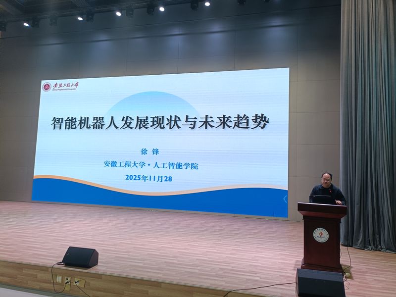 本次活动的主讲嘉宾为人工智能学院的徐锋博士,外国语学院的项菁老师全程参与了讲座互动和课程思政研讨。蚌埠二中高一年级全体学生及班主任共计1300余人现场聆听了讲座。