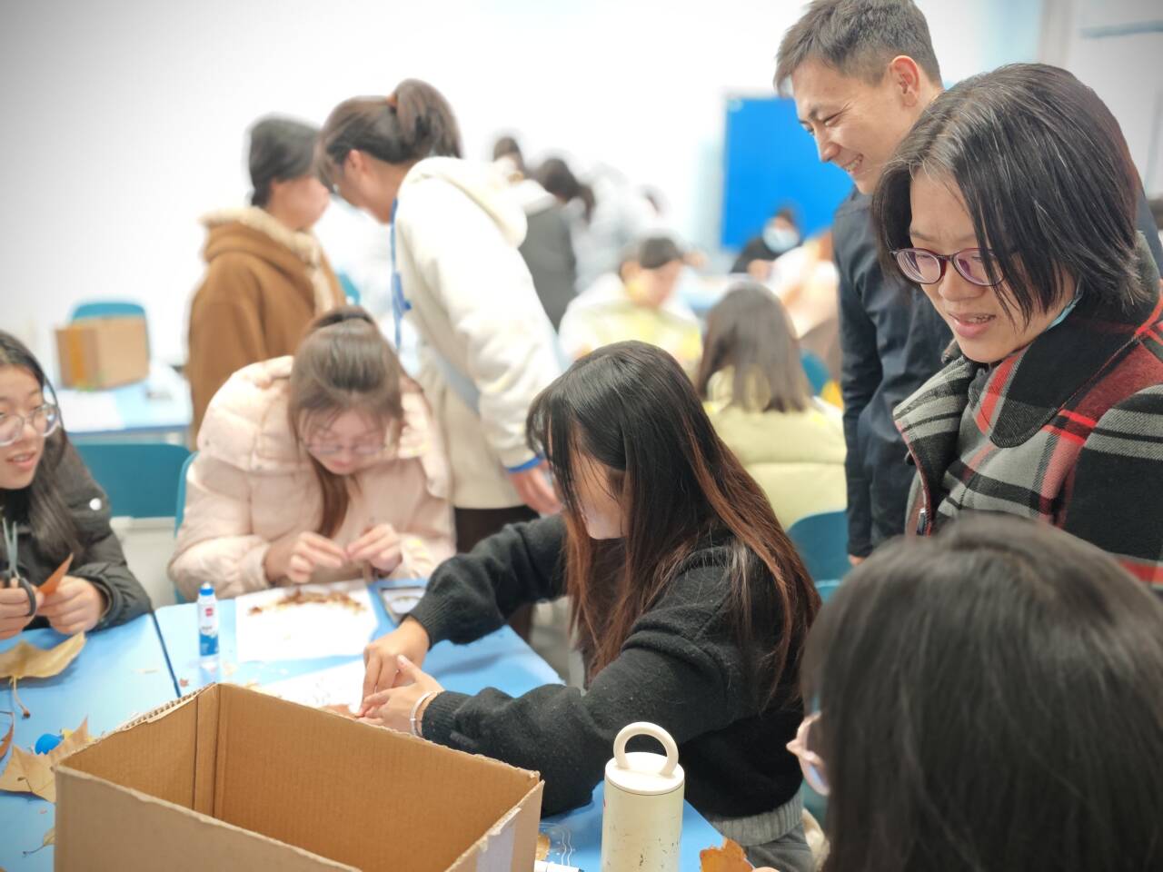 12月3日下午,外国语学院在6教301教室举办首届“落叶寄情·创意手作大赛”。时值初冬,校园内落叶翩跹,这一融合自然美育与劳动教育的特色活动,吸引了26个宿舍、150名学生踊跃参与,学院党委副书记李校林到场观看指导。