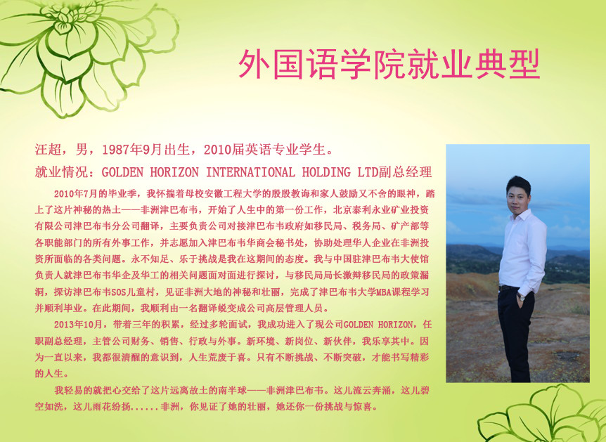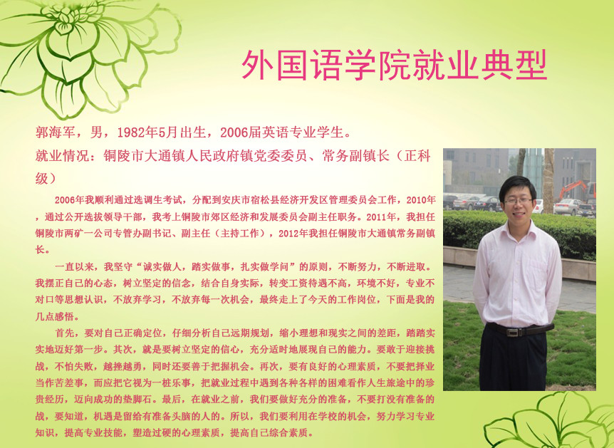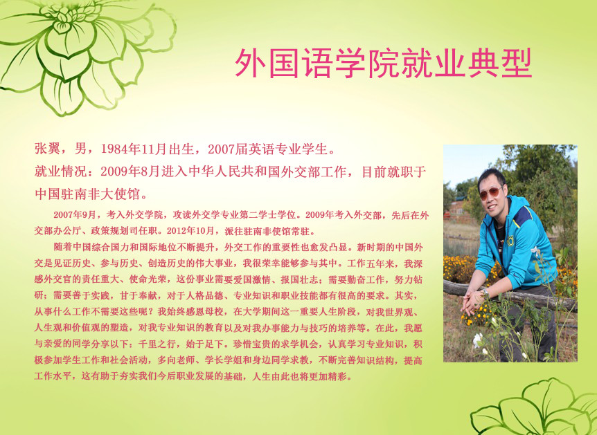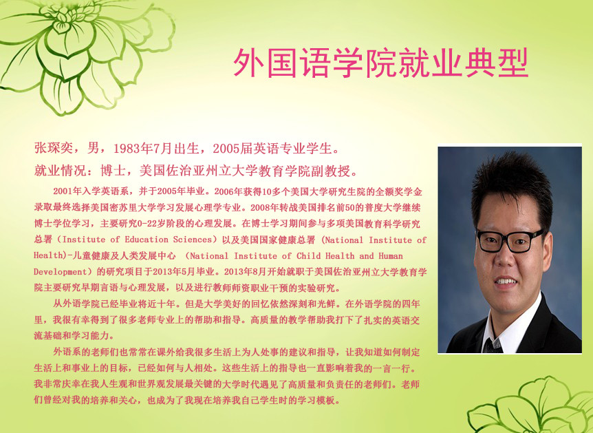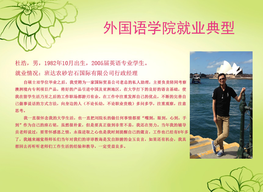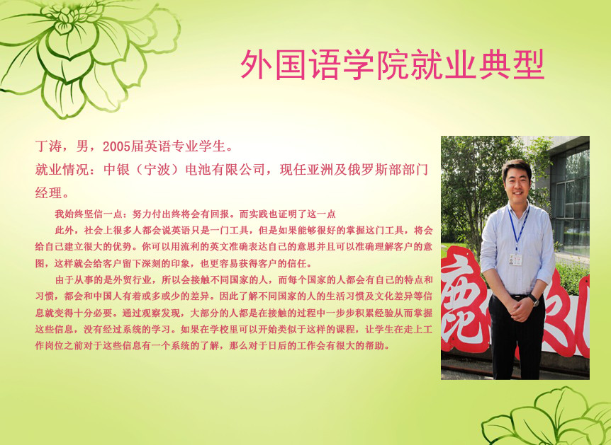 自我校建立以来,外国语学院便涌现大批优秀校友,他们以优异的成绩从母校毕业