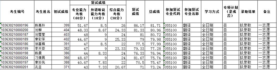 外国语学院2020年硕士研究生招生复试结果一览表(第一批)