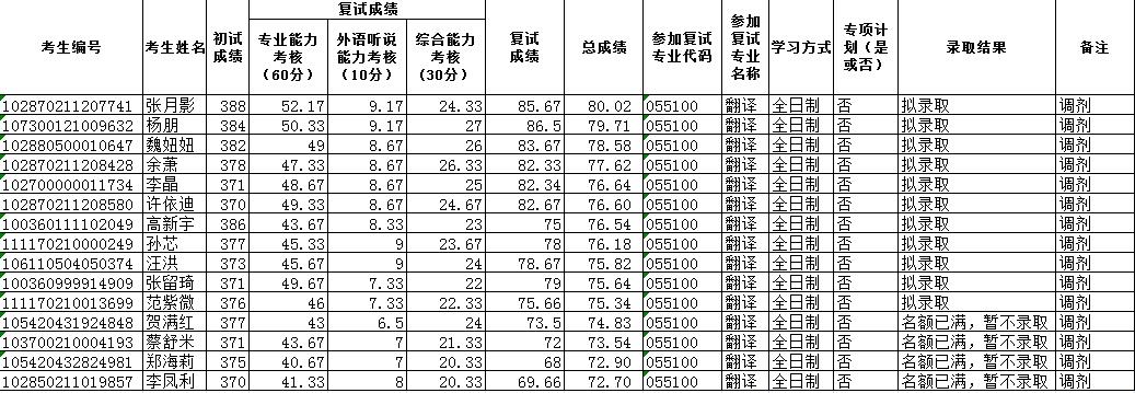 外国语学院2020年硕士研究生招生复试结果一览表更新(第二批)