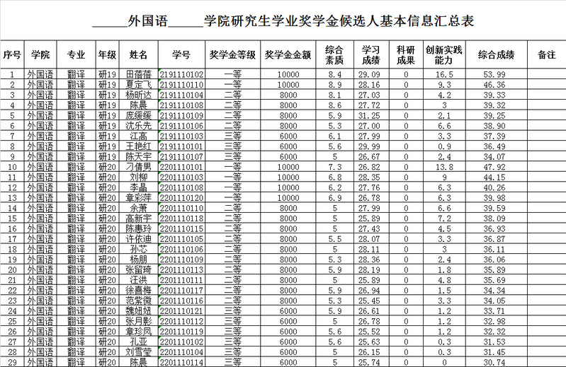 外国语学院根据《RayBetApp官网下载 研究生学业奖学金综合评审办法》(校研字〔2017〕11号)文件要求和《RayBetApp官网下载 研究生国家奖学金评选办法》,经学院评审委员会评审,现将评审结果予以公示。公示期限为5个工作日(2021年9月26日至2020年9月30日)。